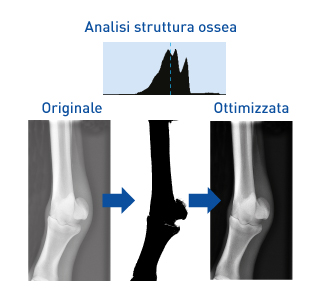 Il software ImagPilot ti permette di passare dallo scatto della radiografia alla diagnosi in pochissimi click! Con ImagePilot, non dovrai più selezionare la taglia dell’animale o la parte anatomica prima di far l’esame! L’algoritmo di ottimizzazione automatica riconosce la parte oggetto di esame ed applica automaticamente i filtri necessari per offrirti sempre l’immagine migliore!